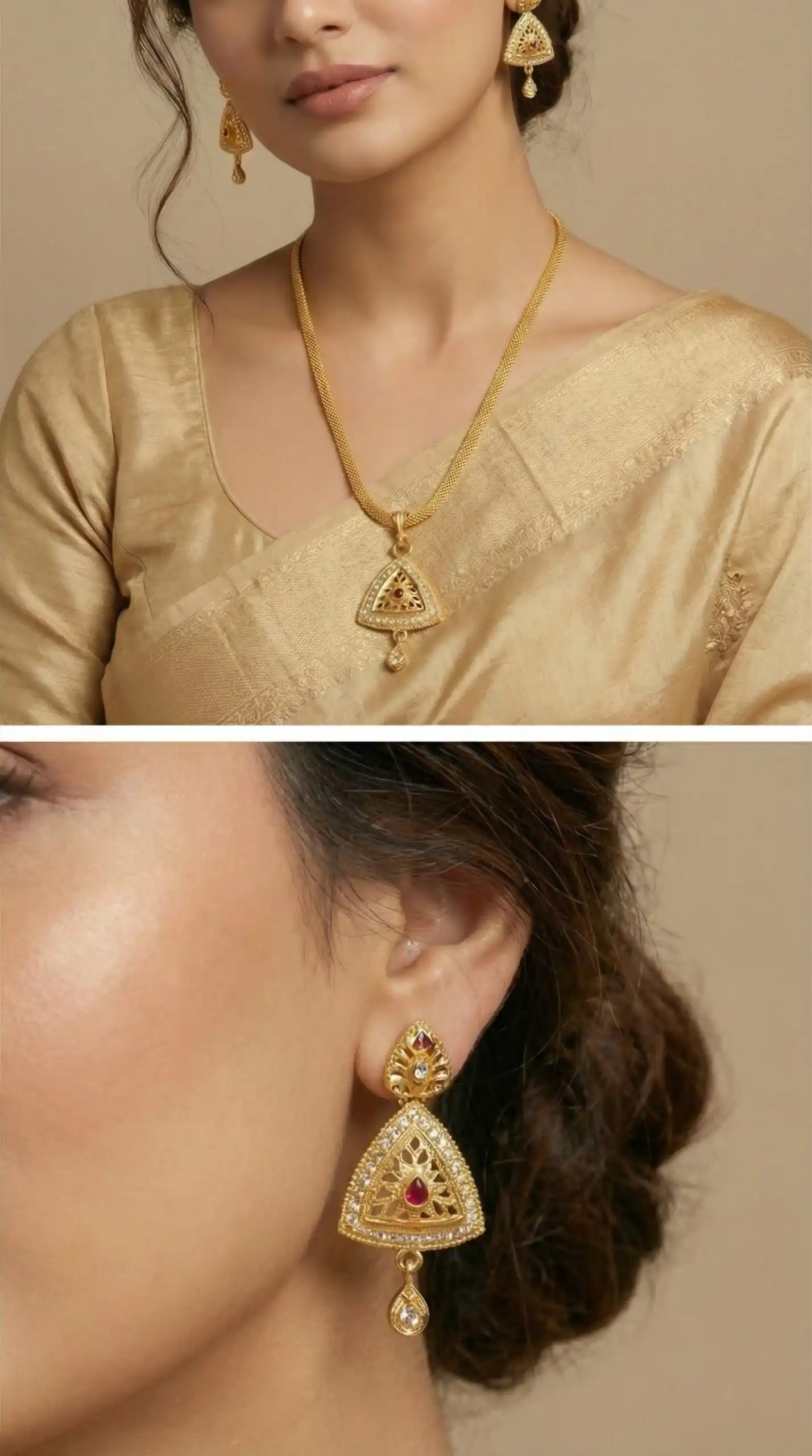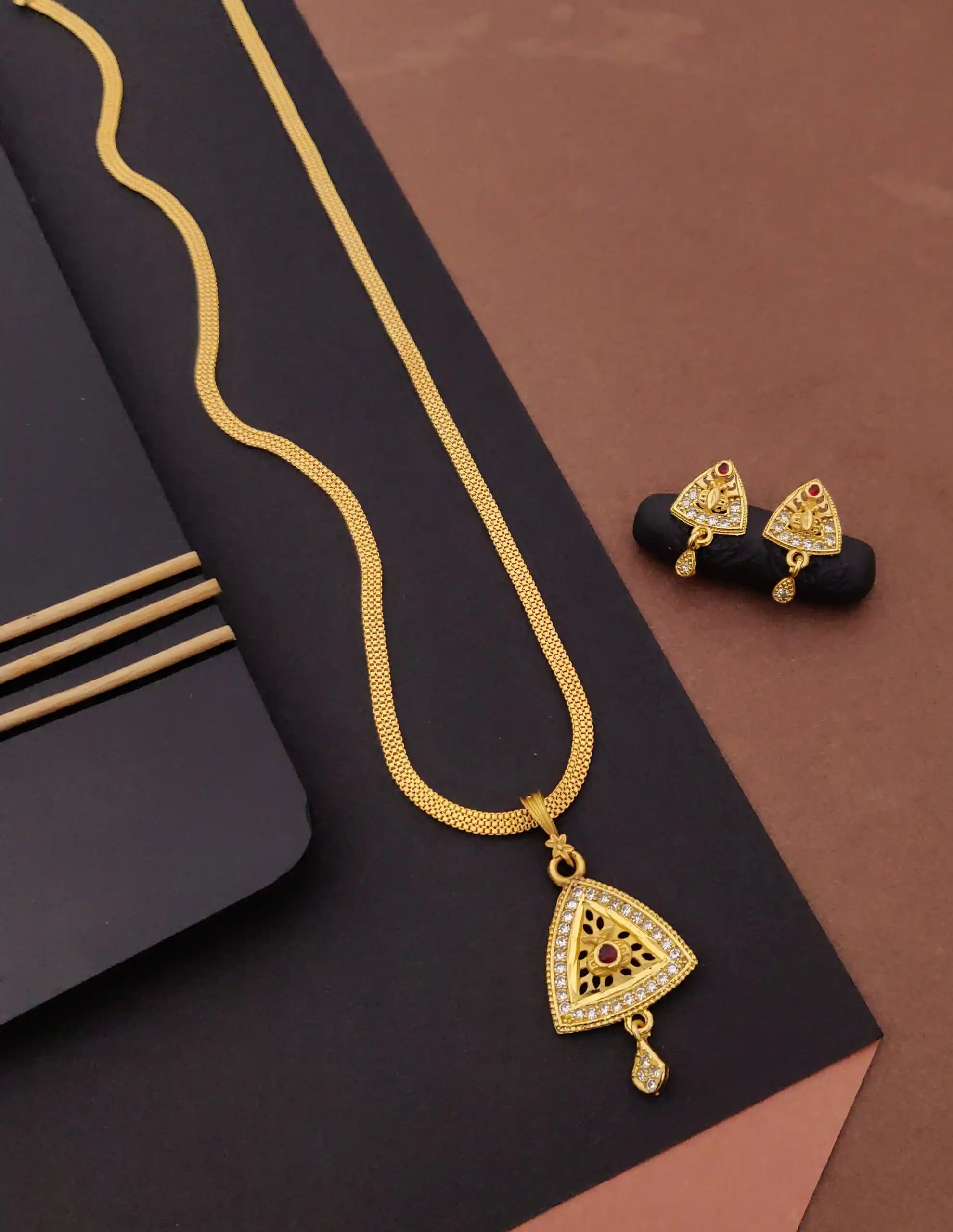 Micro Gold Plated AD Diamond Studded Fancy Oval Pendant Set with Chain