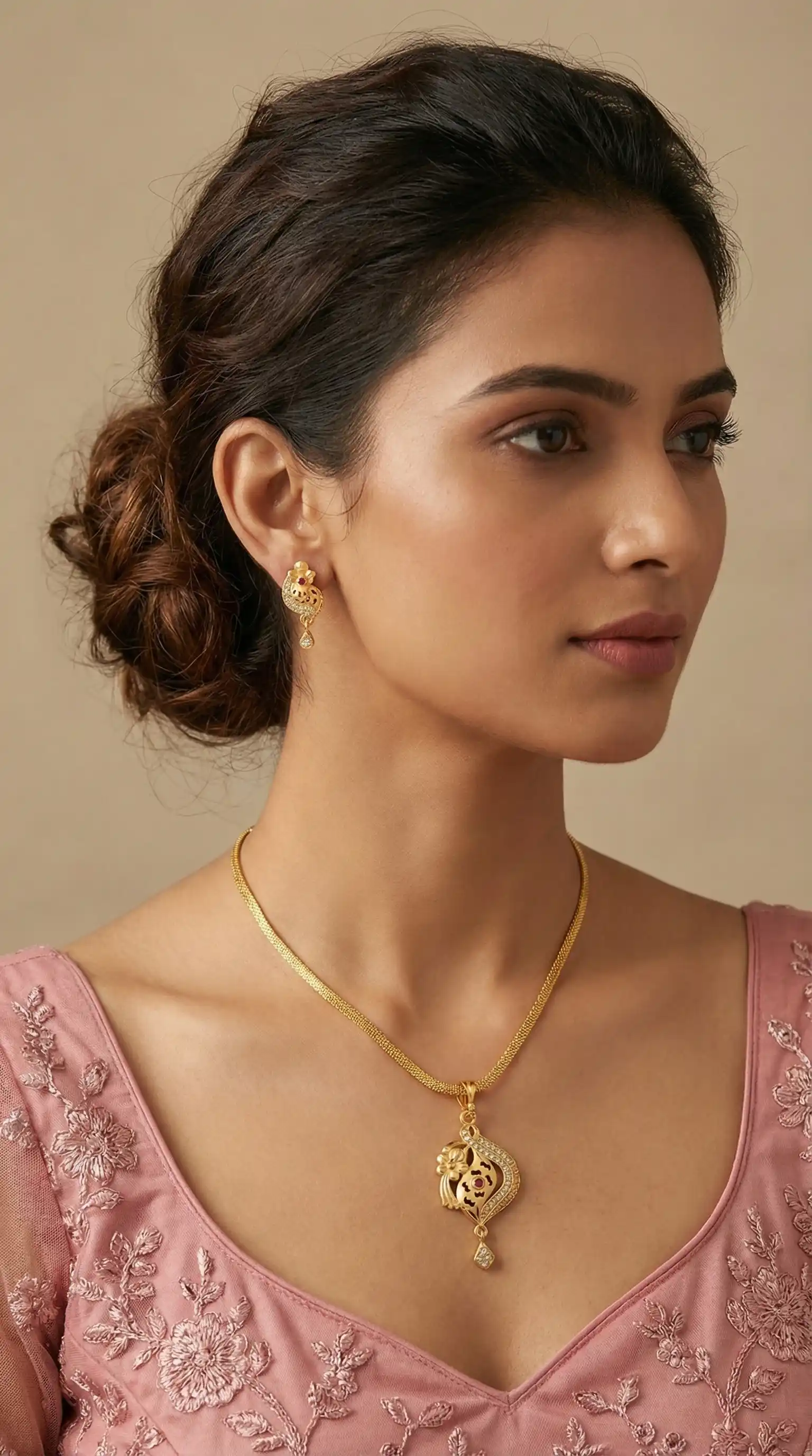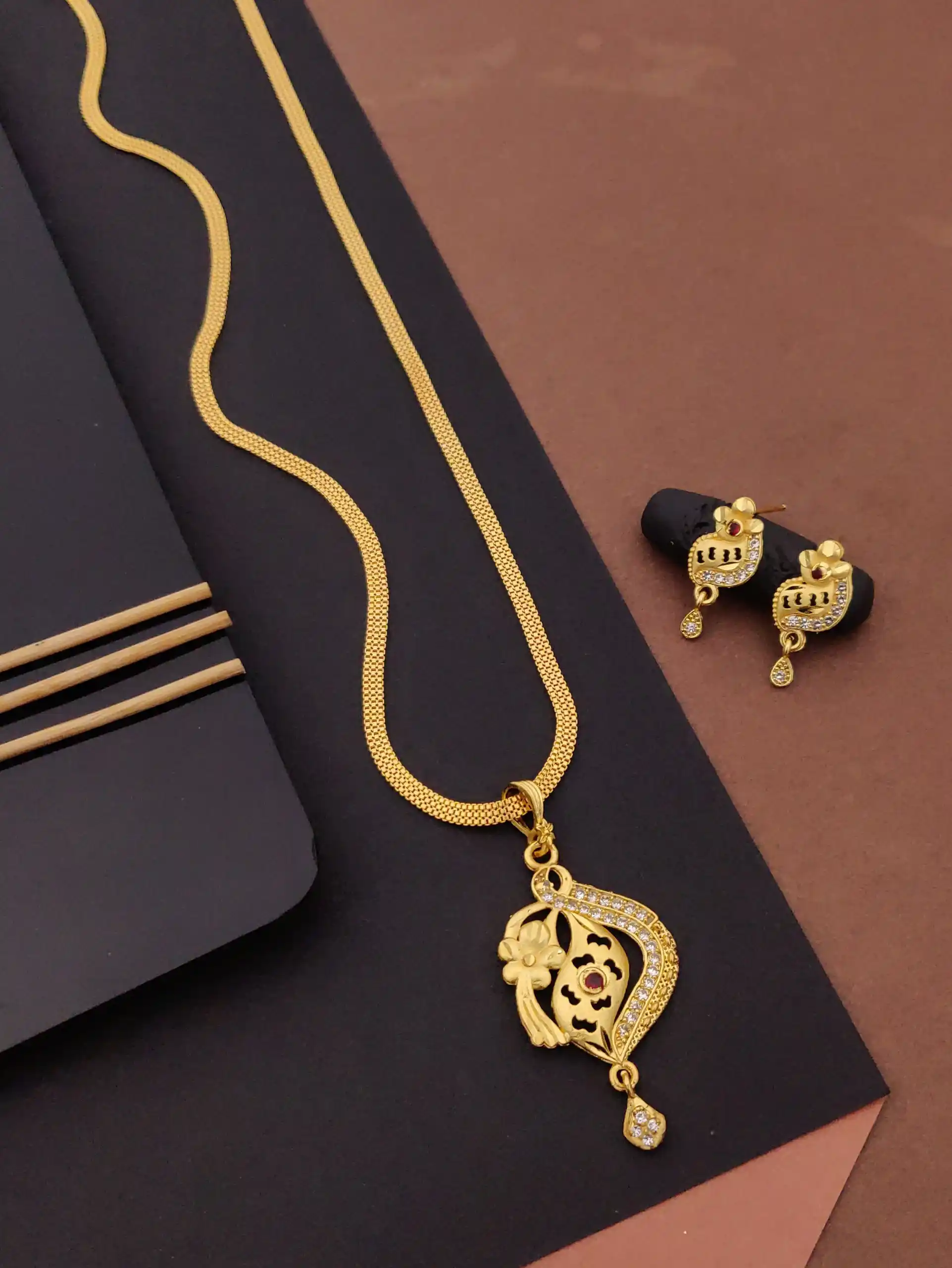 Micro Gold Plated AD Diamond Studded Fancy Oval Pendant Set with Chain
